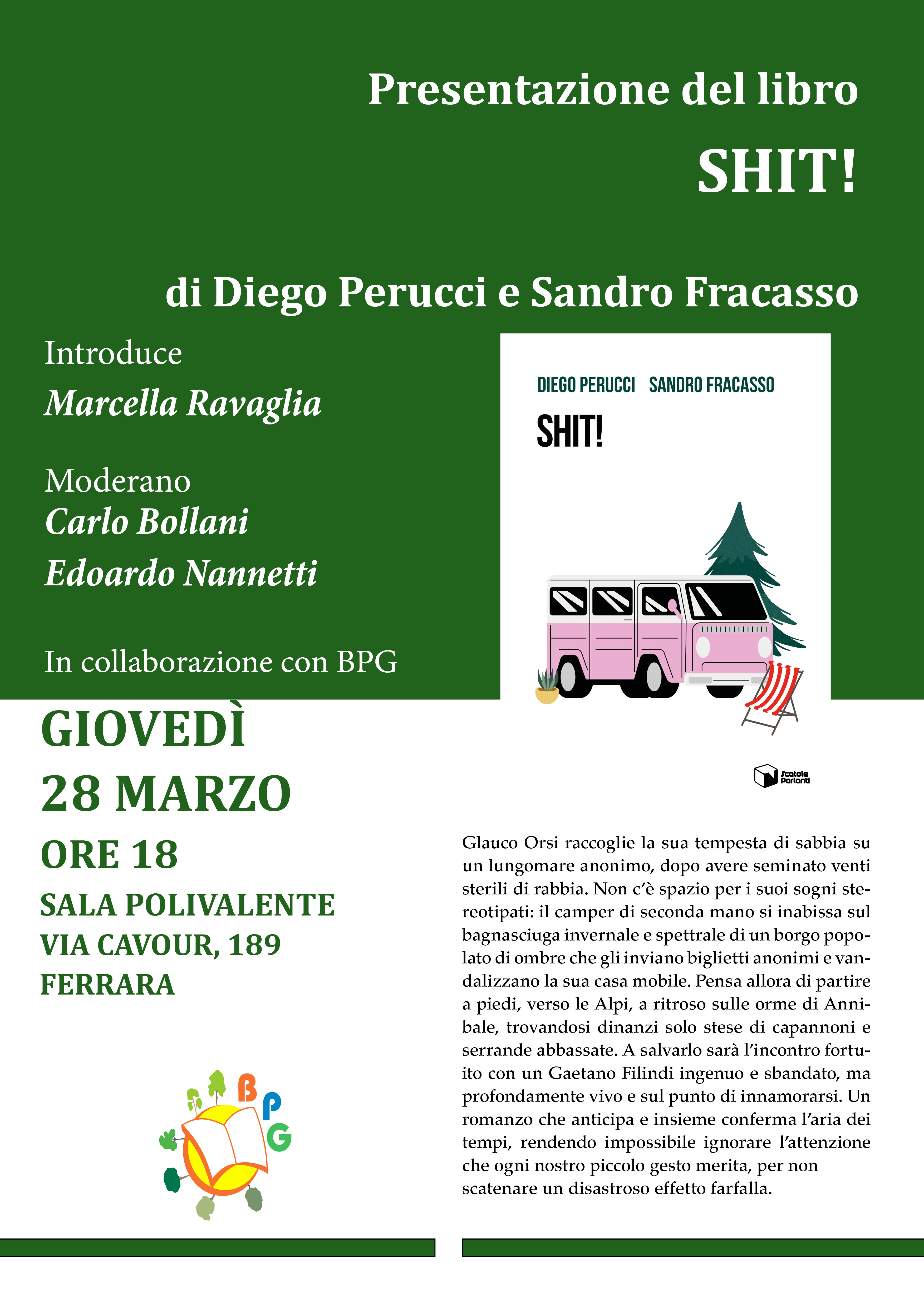 Sala Polivalente Grattacielo, viale Cavour 189 Ferrara, Ferrara, Italia“Shit!”, arriva a Ferrara il nuovo romanzo di Perucci e Fracasso. La storia di un uomo comune, troppo…