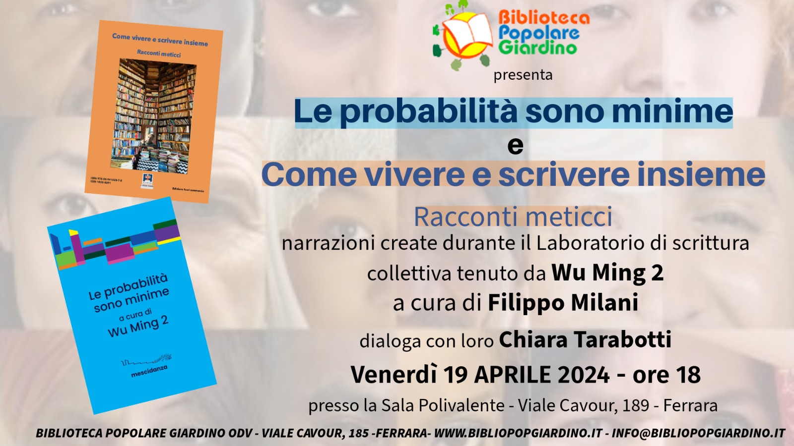 Sala Polivalente Grattacielo, viale Cavour 189 Ferrara, Ferrara, ItaliaPresentazione delle raccolte “Le probabilità sono minime” e “Come vivere e scrivere insieme. Racconti meticci” Narrazioni create durante…