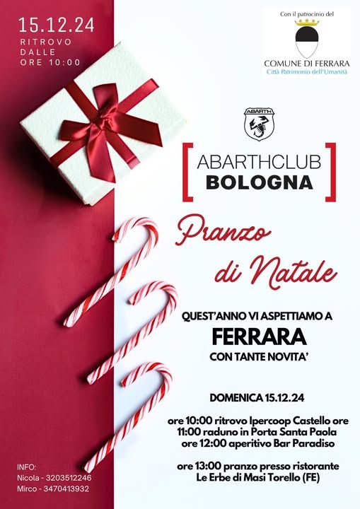 Porta Paola +1 moreE' in calendario per domenica 15 dicembre 2024 dalle ore 11 il Raduno Abarth organizzato a Ferrara dall'Asd Abarth Club…
