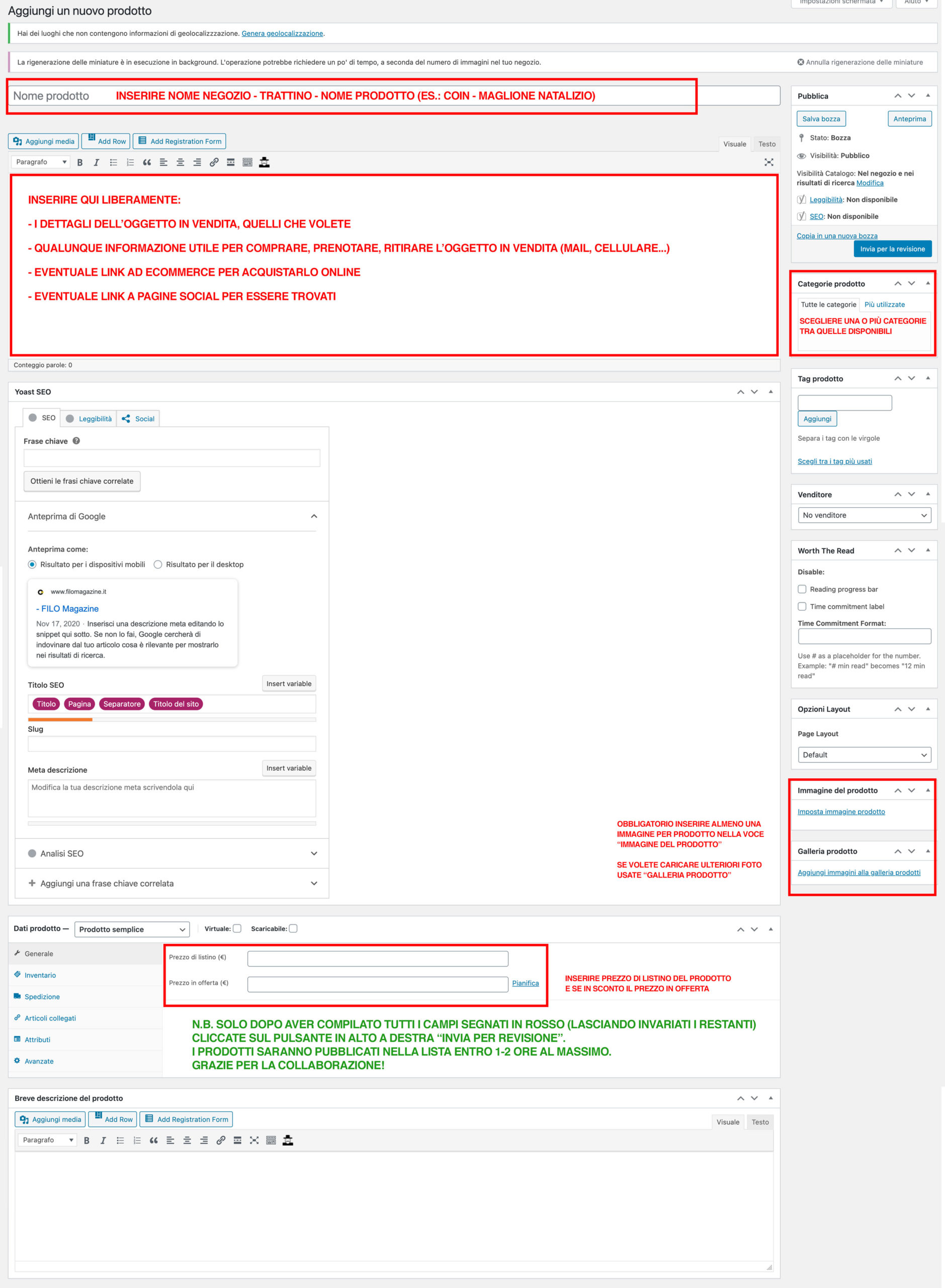 Qui ci sono le istruzioni per compilare la scheda prodotto una volta effettuata la registrazione, leggete bene ma non dovrebbe essere troppo difficile.