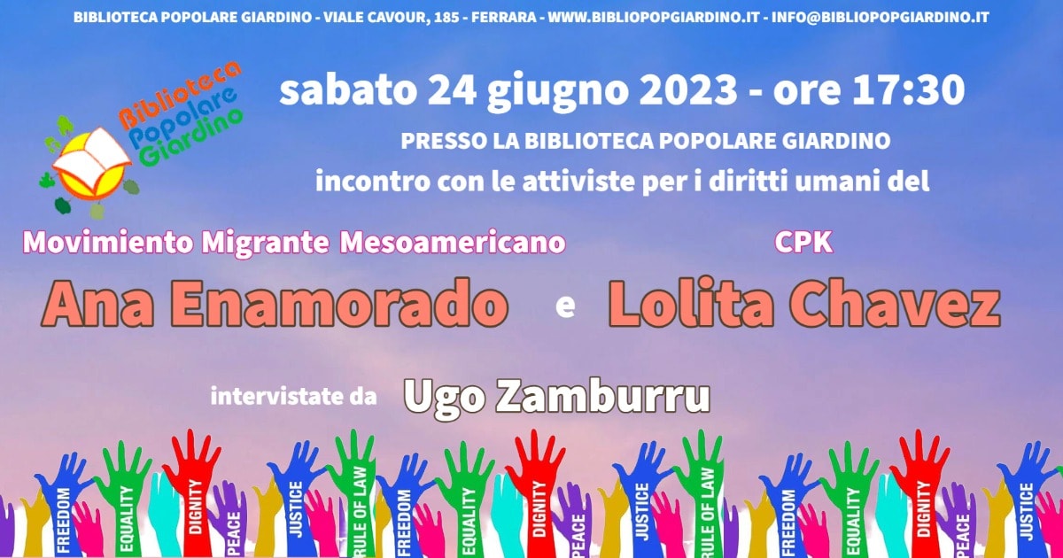 Biblioteca Popolare Giardino Viale Cavour n. 185 ( ai piedi del Grattacielo), FerraraAna Enamorado fa parte del Movimiento Migrante Mesoamericano e dal 2012, partecipando alla Carovana delle Madri Centroamericane, si…